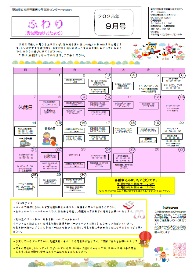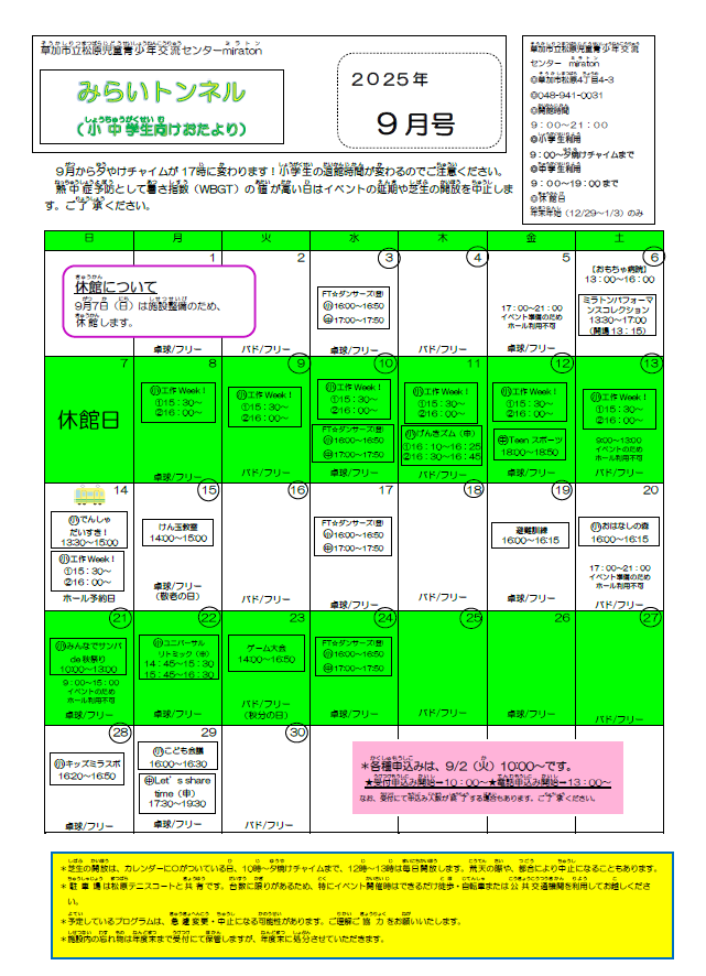 9月のおたより(乳幼児、小中、高青年)